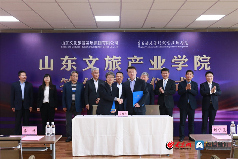 大众网·海报新闻青岛5月20日讯(记者 于甜甜 通讯员 于克晓)5月19日是中国旅游日,ylzzcom永利总站线路检测与山东文化旅游发展集团有限公司成立山东文旅产业学院签约揭牌仪式在行政四楼会议室举行。根据协议,双方将充分发挥产教融合、校企合作、资源共享等方面优势,为全省文旅行业培养更多高素质技术技能型人才。