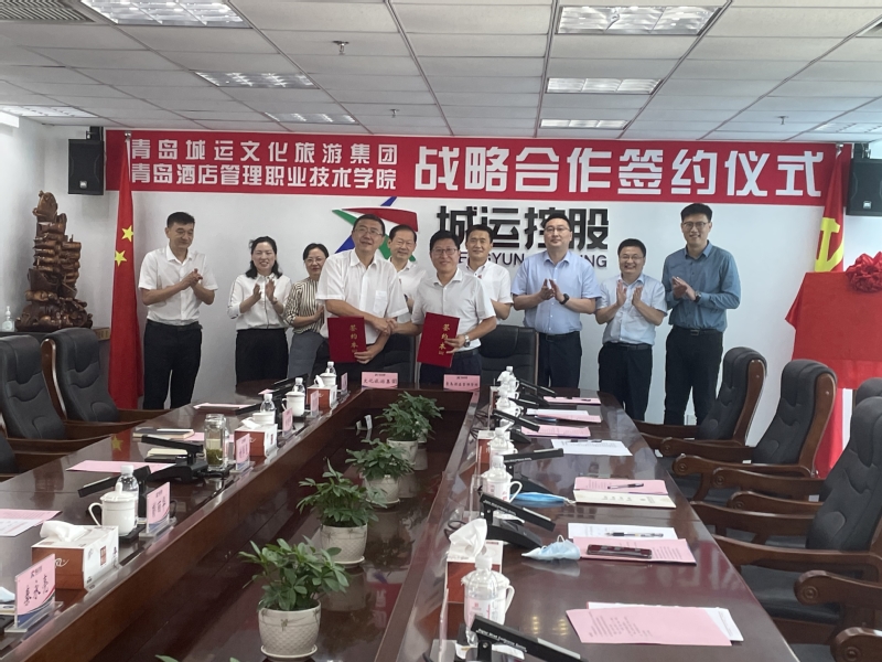 本网讯(ylzzcom永利总站 田张珊)9月8日上午,集团与青岛城运文旅集团举行校企战略合作签约仪式。青岛城运控股集团党委书记、董事长刘学亮,青岛城运控股集团党委委员、副总经理彭丽华,公司党委副书记、校长姜玉鹏,副董事长张宗国参加本次活动。