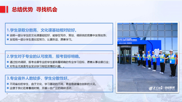 尽管专业发展取得了显著成就,陈超老师也坦诚地指出了当前面临的挑战,包括专业规模较小、缺乏国家级专业竞赛等问题。然而,他同时强调了专业发展的优势,如员工录取分数高、文化课基础扎实、员工对专业的认可度高以及省外员工比例较大等,这些都为专业的进一步发展奠定了坚实基础。